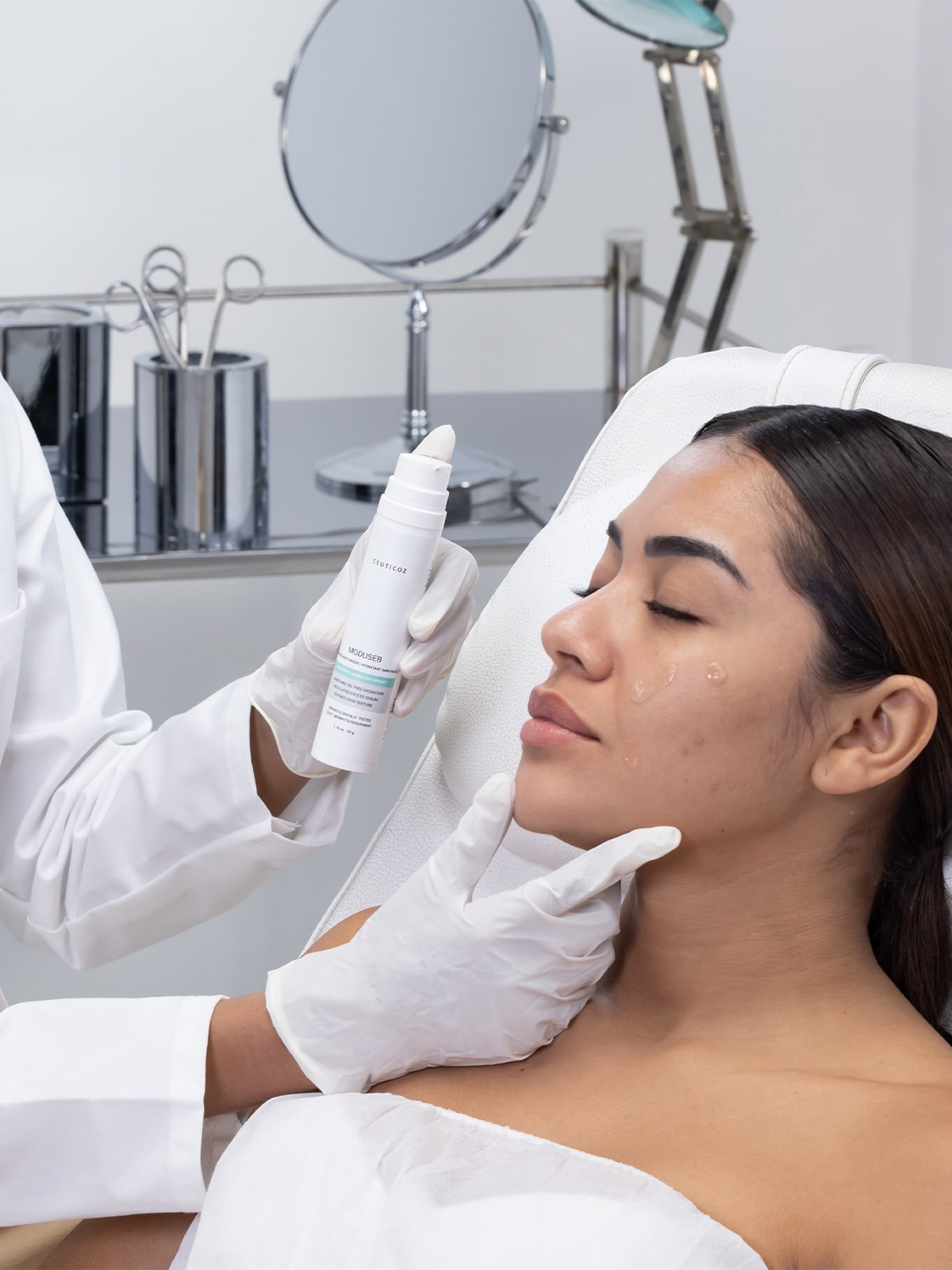 - Take an adequate amount of Moduseb Oil Free Moisturizer.